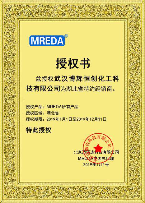 公司2019年1月正式成为“迈瑞达”高端化学生物试剂品牌湖北官方代理,负责该品牌湖北省业务。“迈瑞达”高端试剂品牌始建于美国,覆盖色谱及质谱类试剂,品种极为繁多,能为广大用户提供安全、稳定、品质的实验需求。